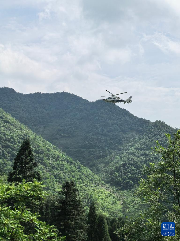 5月22日,直升机在贵州省大方县果瓦乡庆阳村参与救援(手机照片)。新华社记者 杨文斌 摄