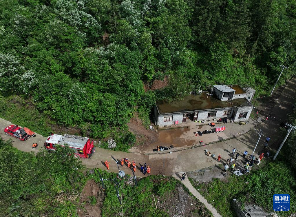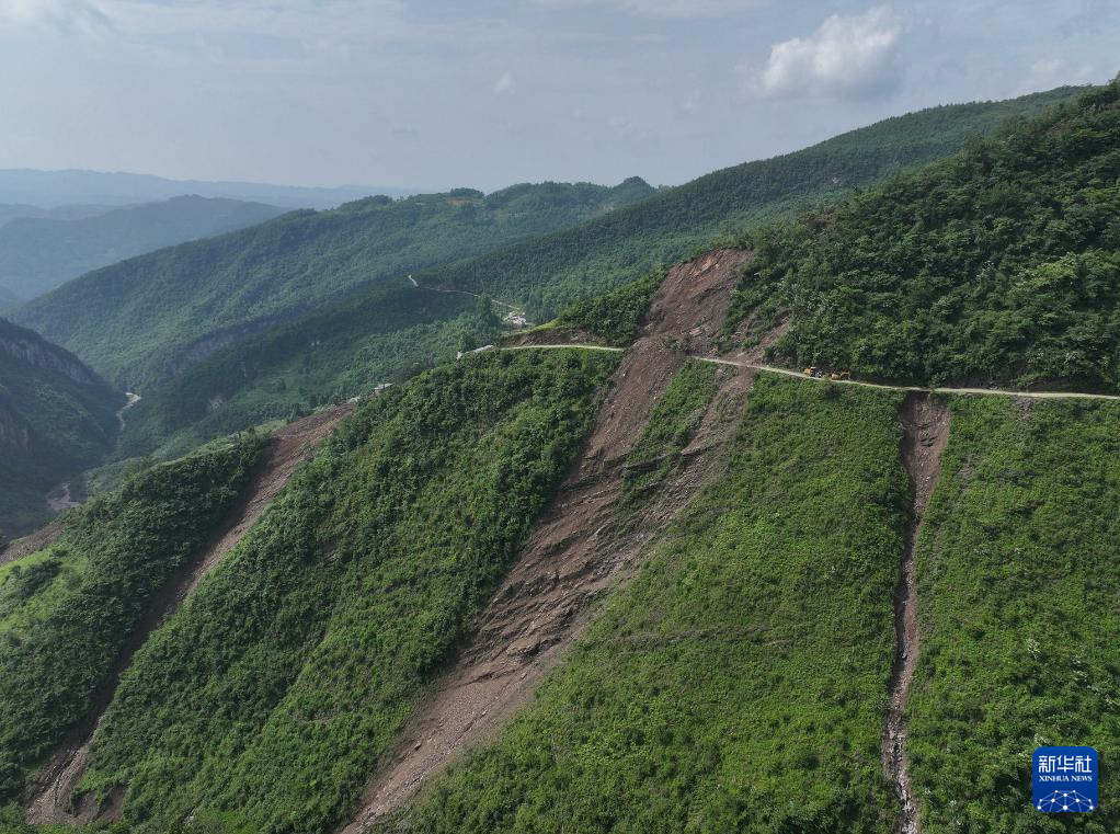 通往贵州省毕节市大方县果瓦乡庆阳村山体滑坡现场的道路因滑坡而中断(5月22日摄,无人机照片)。新华社记者 杨文斌 摄